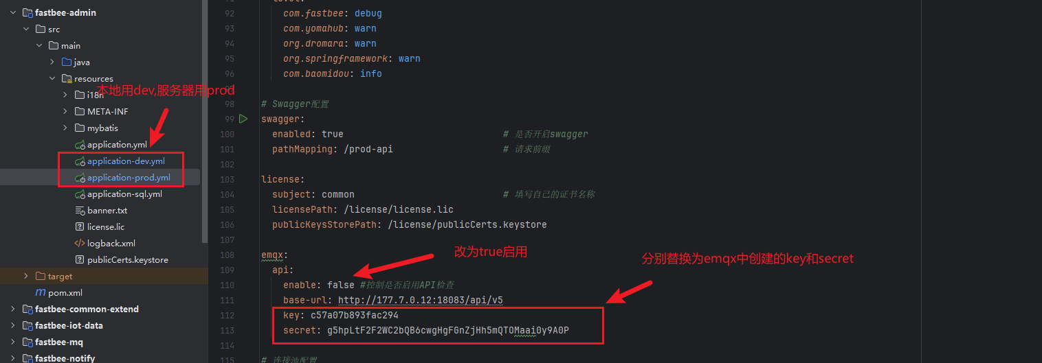 为保证设备准确上下线,项目运行后,可在emqx控制台创建API密钥,并且将apiKey和apiSecret添加到application.yml中,重启Java服务
