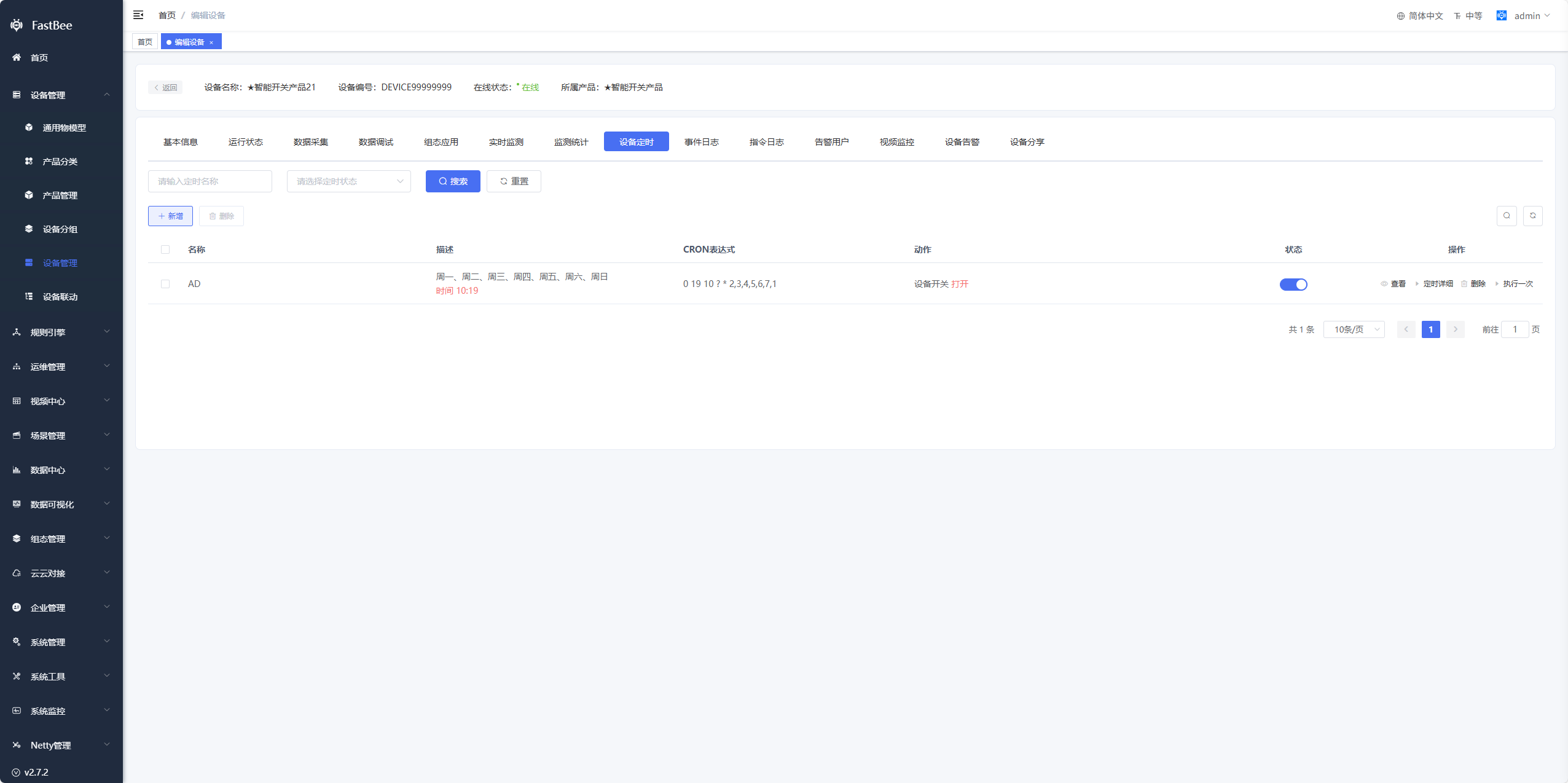 | 激活时间 | 只读,设备首次接入系统时的时间 |