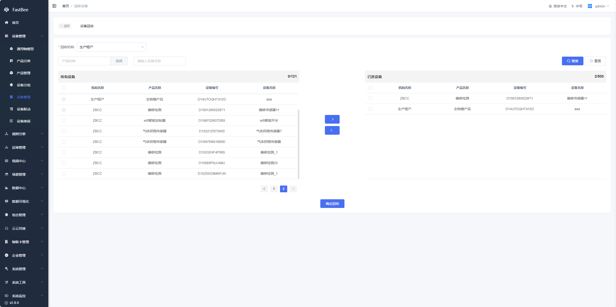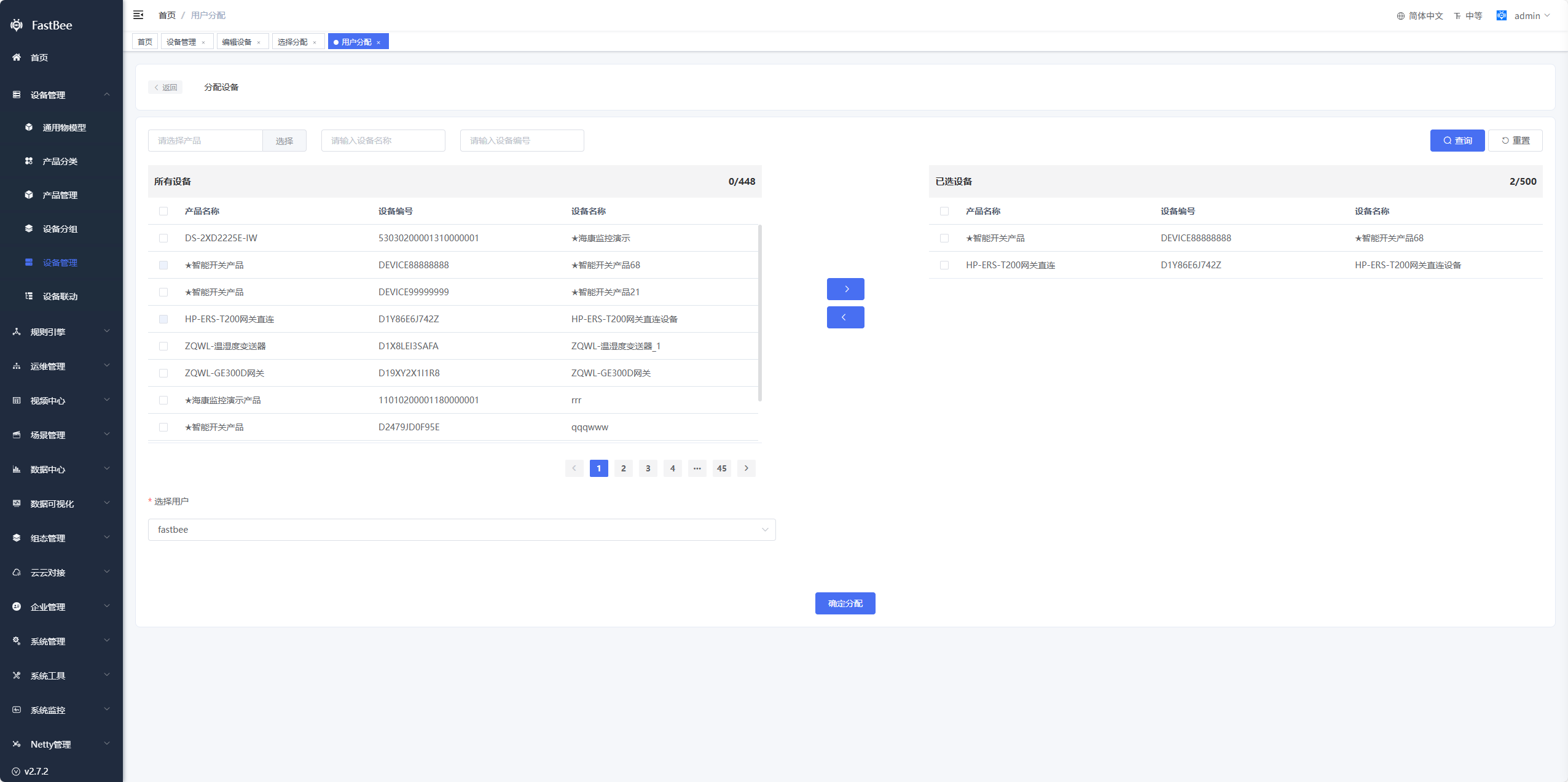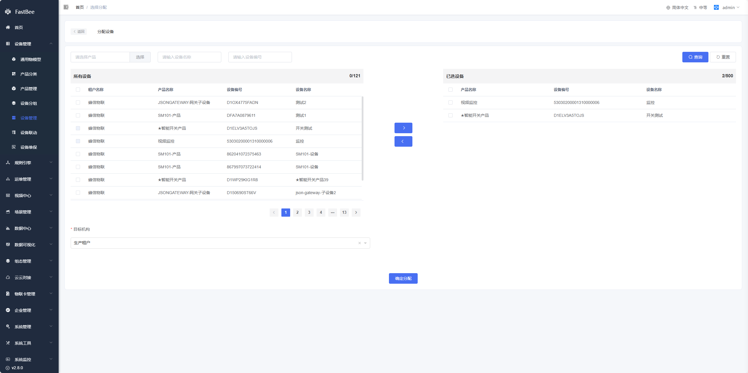 - 选择分配:支持把设备分配给其他机构;上级机构可以操作下级机构的设备分配给其他机构;