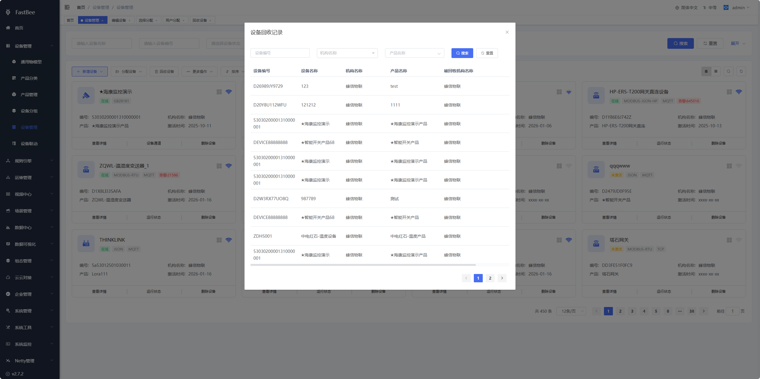 - 设备回收记录:可以看到设备回收记录
