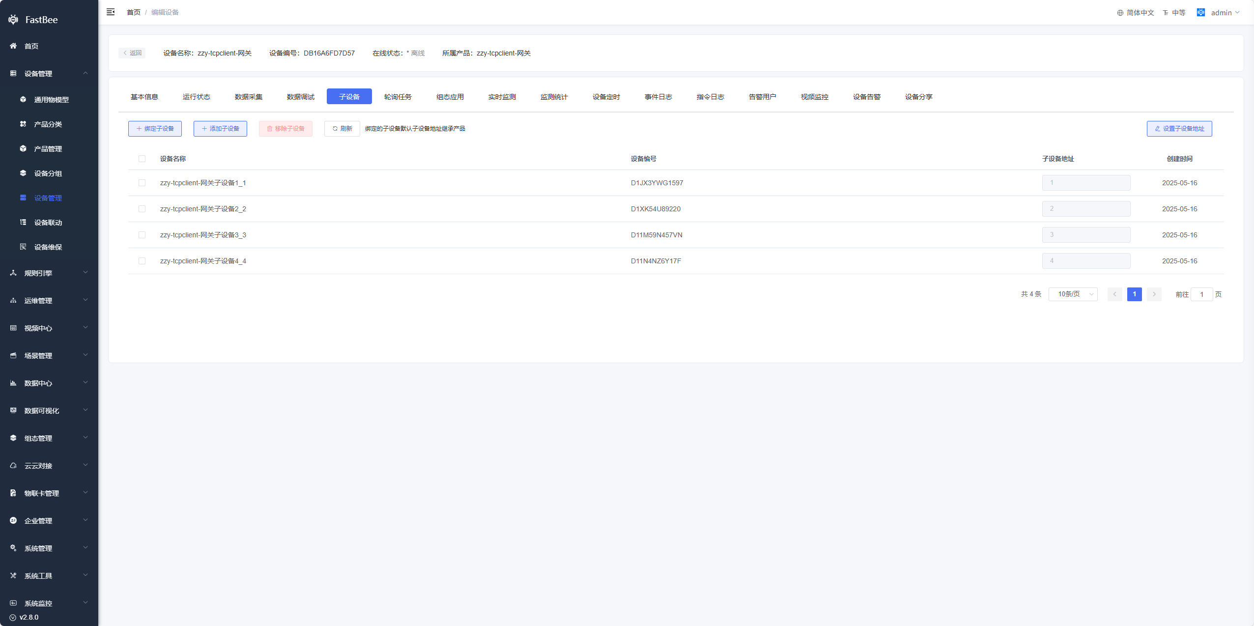 产品是网关设备类型,部分通讯协议支持子设备配置,可通过绑定或者添加子设备