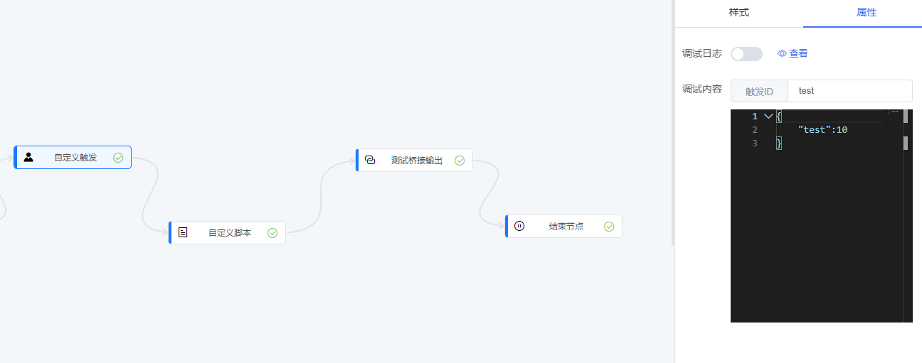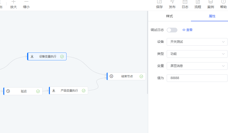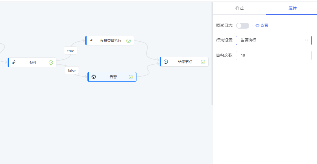 - 不同的节点会展示不同的属性设置,根据功能需求进行设置